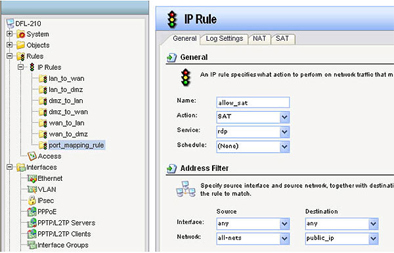 Шаг 9: Кликните по вкладке SAT, а затем зайдите в выпадающее меню New IP Address и выберите private_ip (создано в шаге 3).