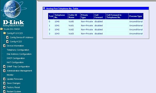 В данном примере порт 1 DG104SH (IP 192.168.0.104) с Tcid0 имеет номер телефона 1040, порт 2 с Tcid1 имеет номер телефона 1041 и так далее в зависимости от Ваших настроек.