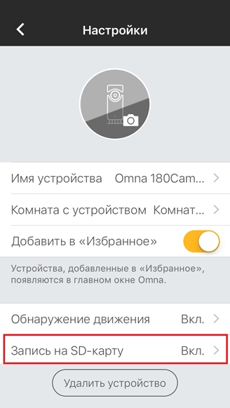 - Для активации записи на карту microSD при обнаружении движения установите переключатель Запись на SD-карту в правое положение.