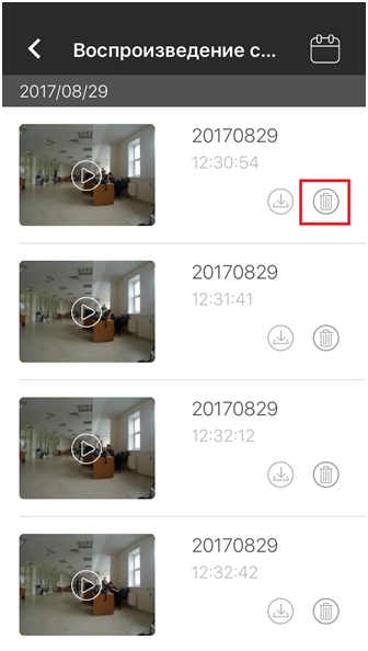 - Для удаления видеоклипа с SD-карты нажмите соответствующий значок рядом с видеоклипом.