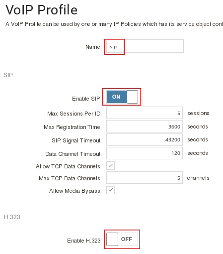 add IPPolicy Name=sip_policy Service=sip SourceInterface=lan1 SourceNetwork=InterfaceAddresses/lan1_net DestinationInterface=wan1 DestinationNetwork=all-nets Index=1 VoIP=Yes VoIP_Policy=sip SourceAddressTranslation=NAT