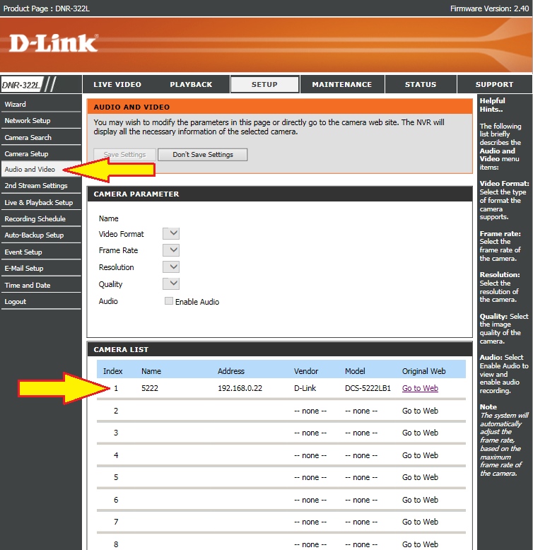 Сұрақ: Как изменить настройки аудио и видео в сетевом видеорегистраторе DNR-322L?
