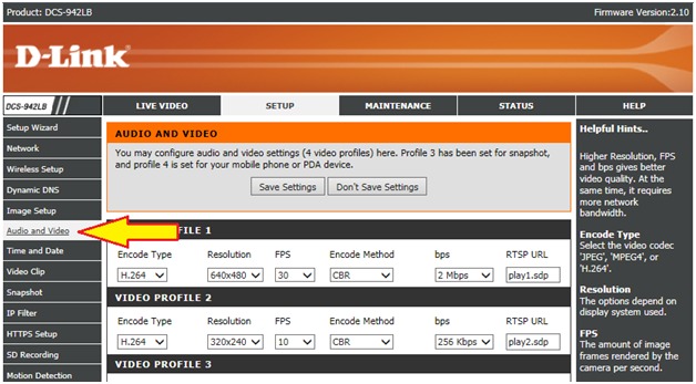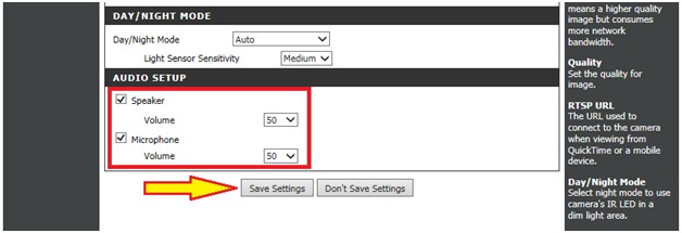 Сұрақ: Как выполнить настройки аудио (динамик и микрофон) на камере DCS-942L?