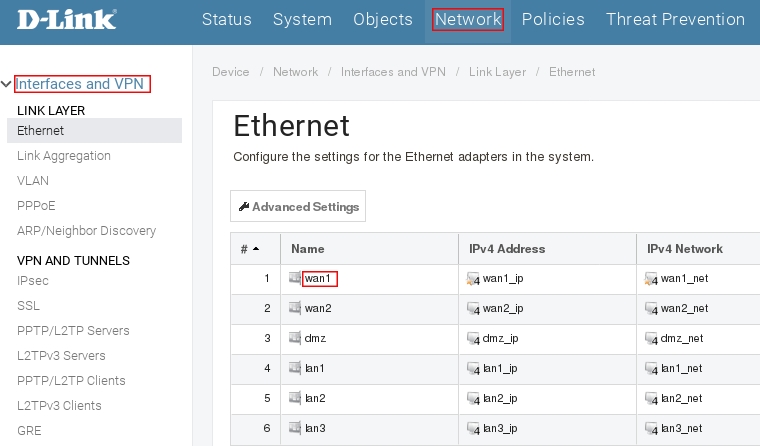 Пример будет показан на устройстве DFL-870. На WAN1 интерфейсе будет установлен MAC 00:21:91:ef:95:cd