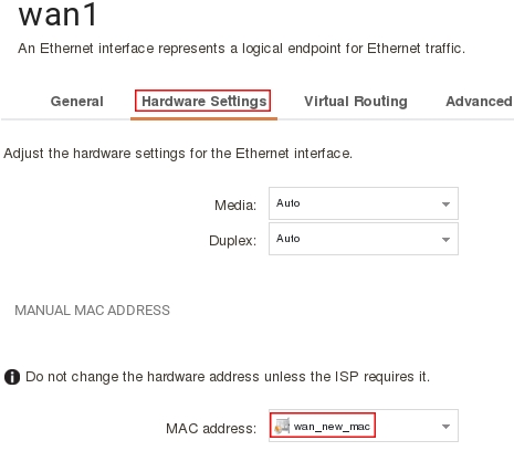 Перейдите на вкладку Hardware Settings и в поле MAC Address из выпадающего меню установите wan_mac
