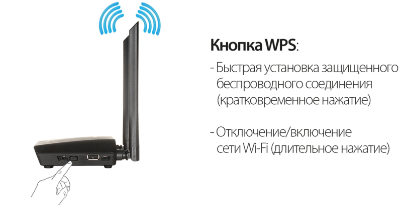 Кроме того, устройство оборудовано кнопкой для выключения/включения Wi-Fi-сети. В случае необходимости, например, уезжая из дома, Вы можете выключить беспроводную сеть маршрутизатора одним нажатием на кнопку, при этом устройства, подключенные к LAN-портам маршрутизатора, останутся в сети.