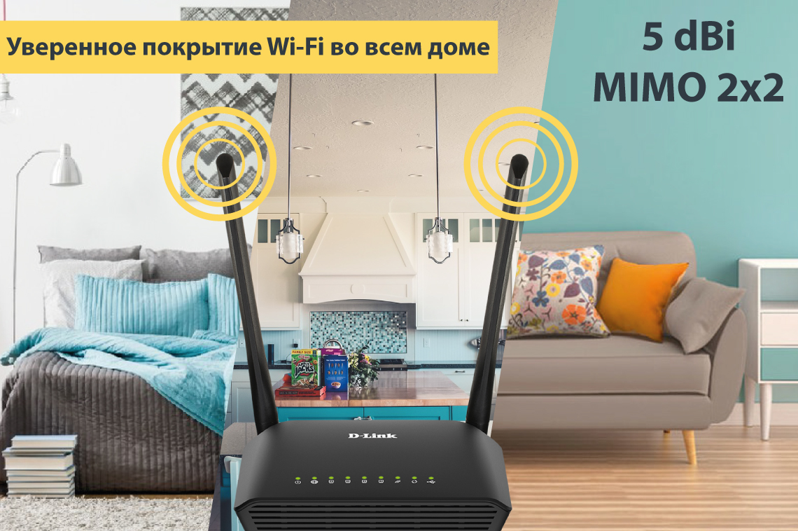 • Две внешние несъемные антенны с коэффициентом усиления 5 дБи