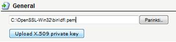 6. Atsivėrusiame lange nurodykite kelią iki privataus DFL rakto (pagal pvz.: „dfl.pem“).