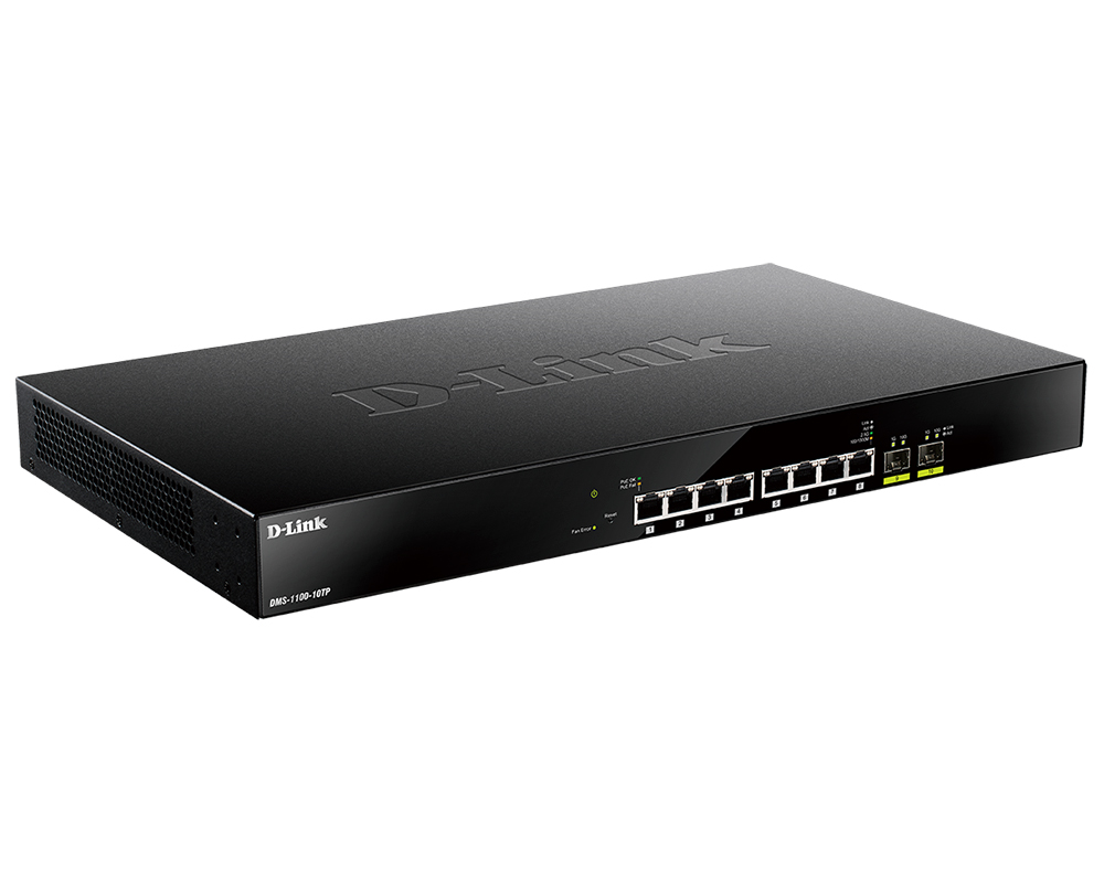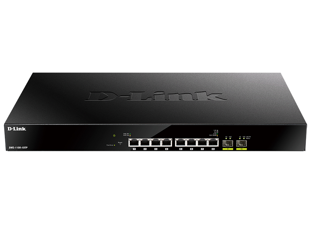 DMS-1100-10TP Switch with 8 2.5GBASE-T PoE ports and 2 10G SFP+ ports