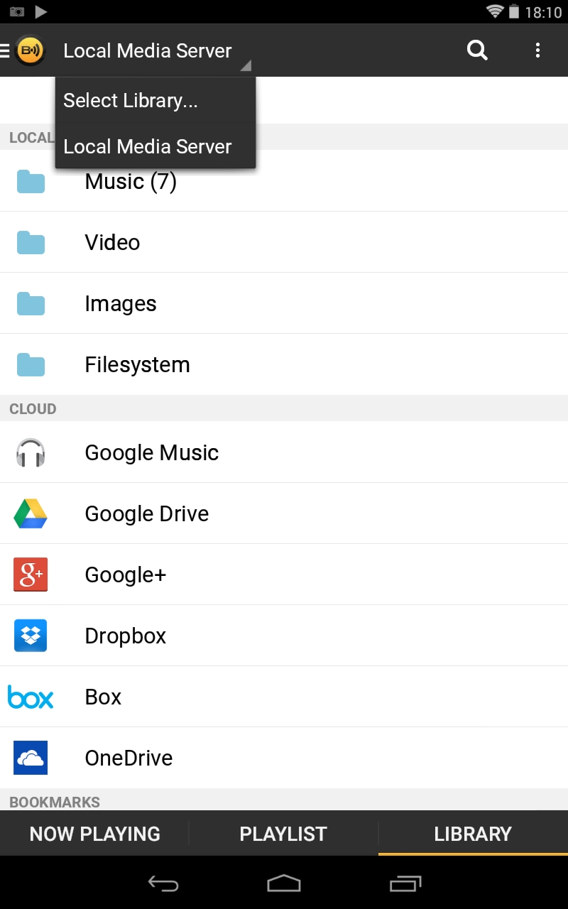 2. Перейдите на вкладку Library. В верхней части страницы выберите пункт Local Media Server.