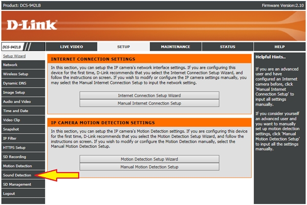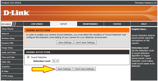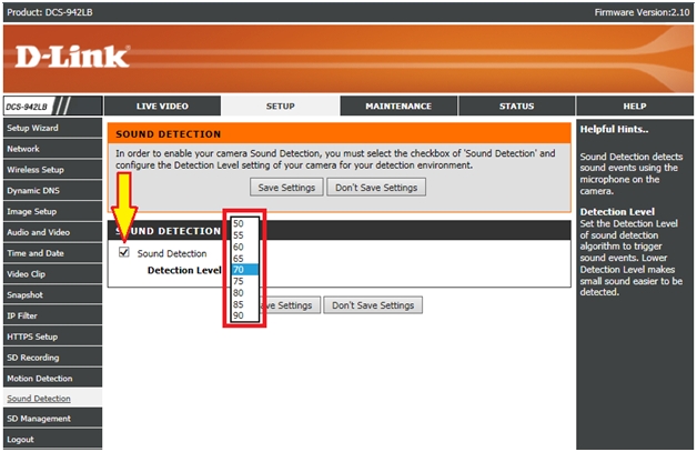 Question: Как настроить обнаружение звука на камере DCS-942L?