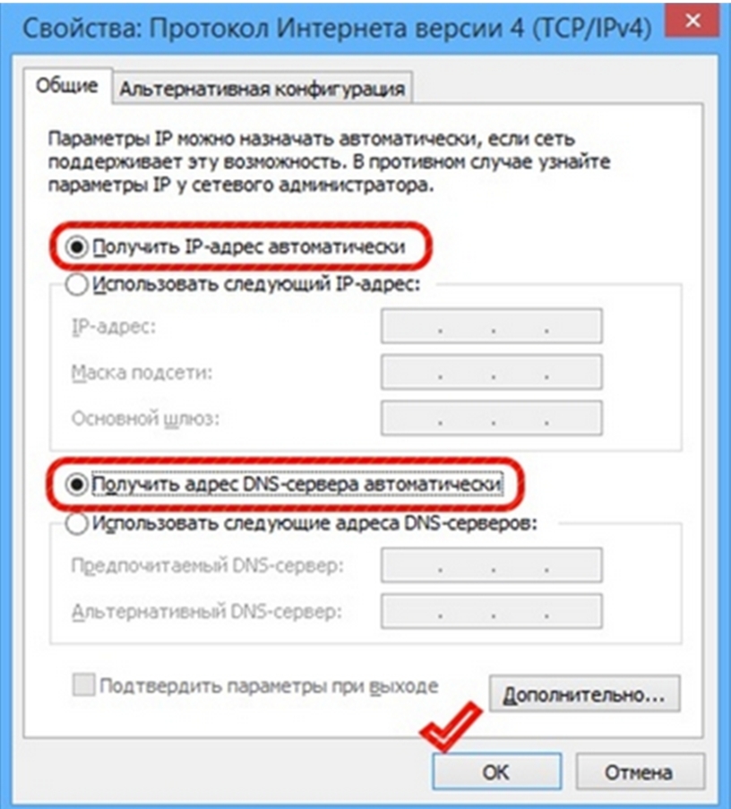 - компьютер настроен на автоматическое получение IP-адреса.