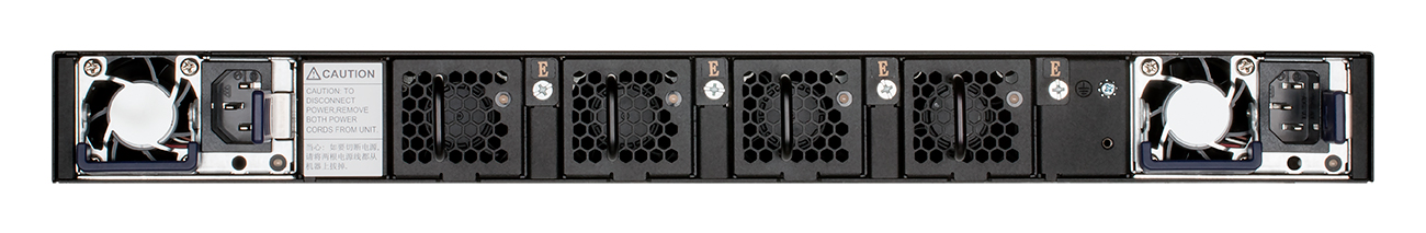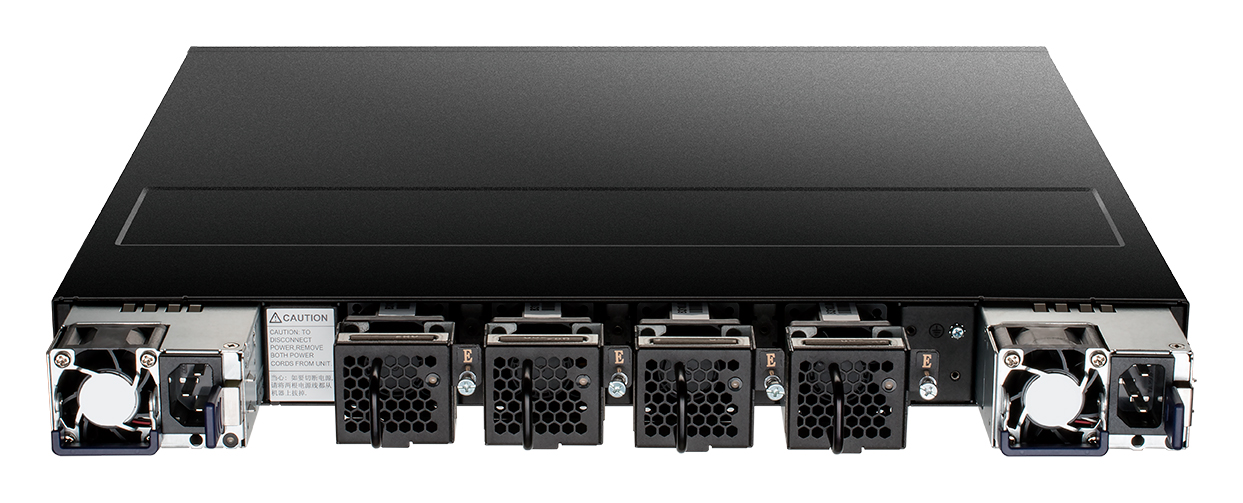 The DXS-5000-54S switch features a modular fan and power supply design for a high availability architecture. The hot-swappable design means that fans and power supplies can be replaced without affecting switch operation. Load sharing enables both power supplies to evenly distribute load to increase reliability and lifetime. Meanwhile, 1+1 redundancy minimizes downtime in case of a single power supply failure.