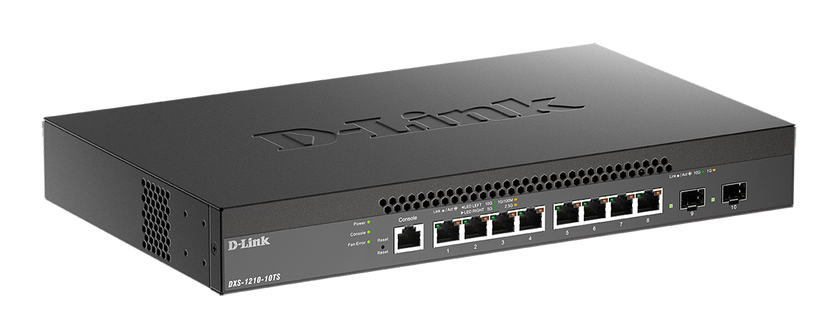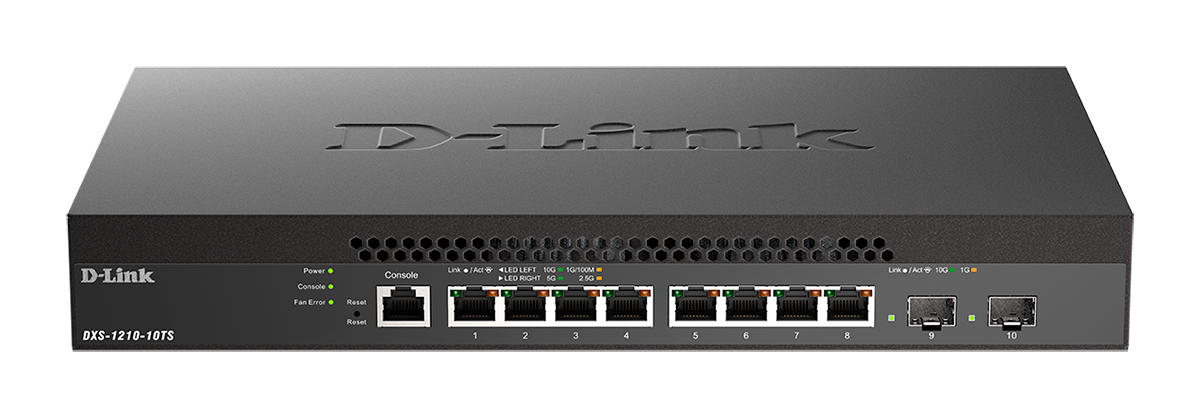 The D-Link DXS-1210-10TS 10 Gigabit/Multi-Gigabit Ethernet Smart Managed Switch is a cost-effective 10 Gigabit switch capable of servicing a range of network needs in any business. With high performance and low latency, the DXS-1210-10TS fulfills the needs for virtualization, cloud services, and server-to-server applications, making it perfect for Small-to-Medium-Business (SMB) customers.