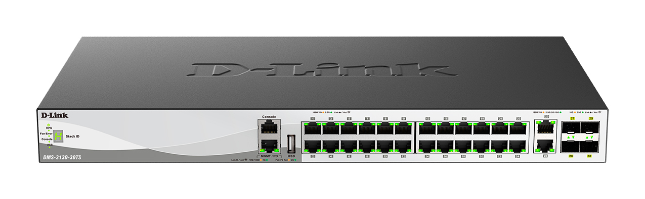 The DMS-3130 Series is a range of Layer 3 Stackable Managed Switches designed to connect end-users in a secure enterprise or metro Ethernet access network. These switches support both multicasting and enhanced security, making them an ideal multi-Gigabit access layer solution. The DMS-3130 Series has PoE and non-PoE models equipped with multi-Gigabit Ethernet and