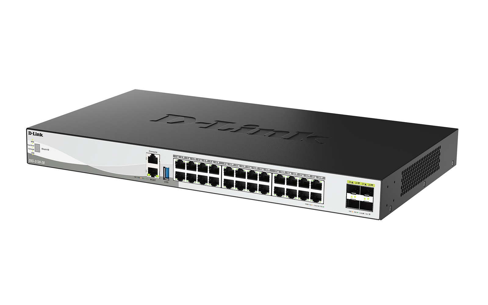 DXS-3130-28 L3 Stackable Managed Switch with 24 10GBase-T Ports and 4 25GBase-X SFP28 Ports