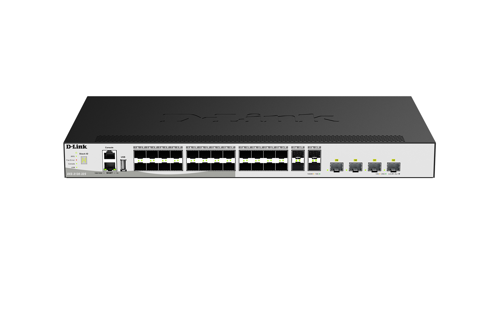 DXS-3130-32S L3 Stackable Managed Switch with 28 10GBase-X SFP+ Ports and 4 25GBase-X SFP28 Ports