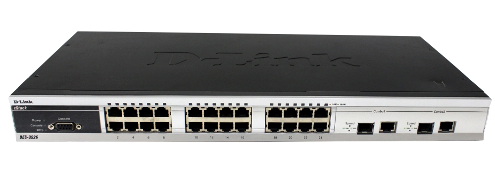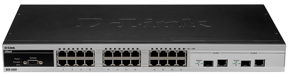 - DES-3526/DES-3526DC: 24 10/100BASE-TX ports, 2 combo 1000BASE-T/SFP