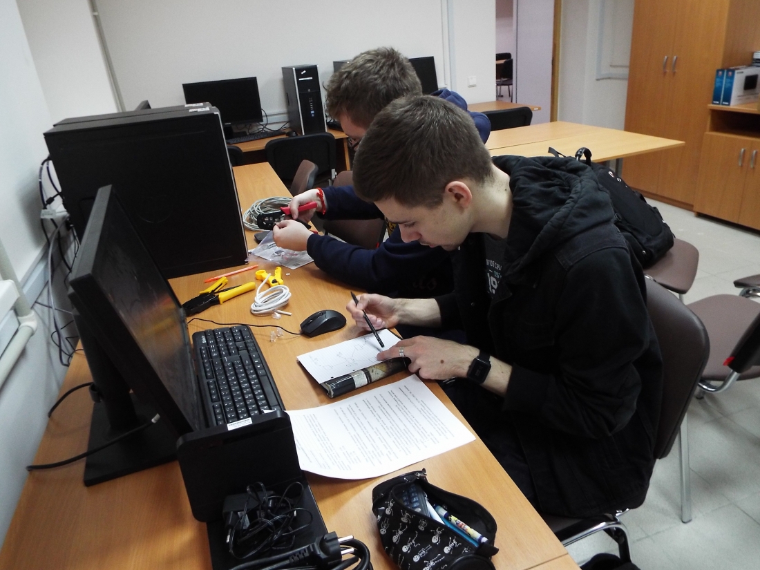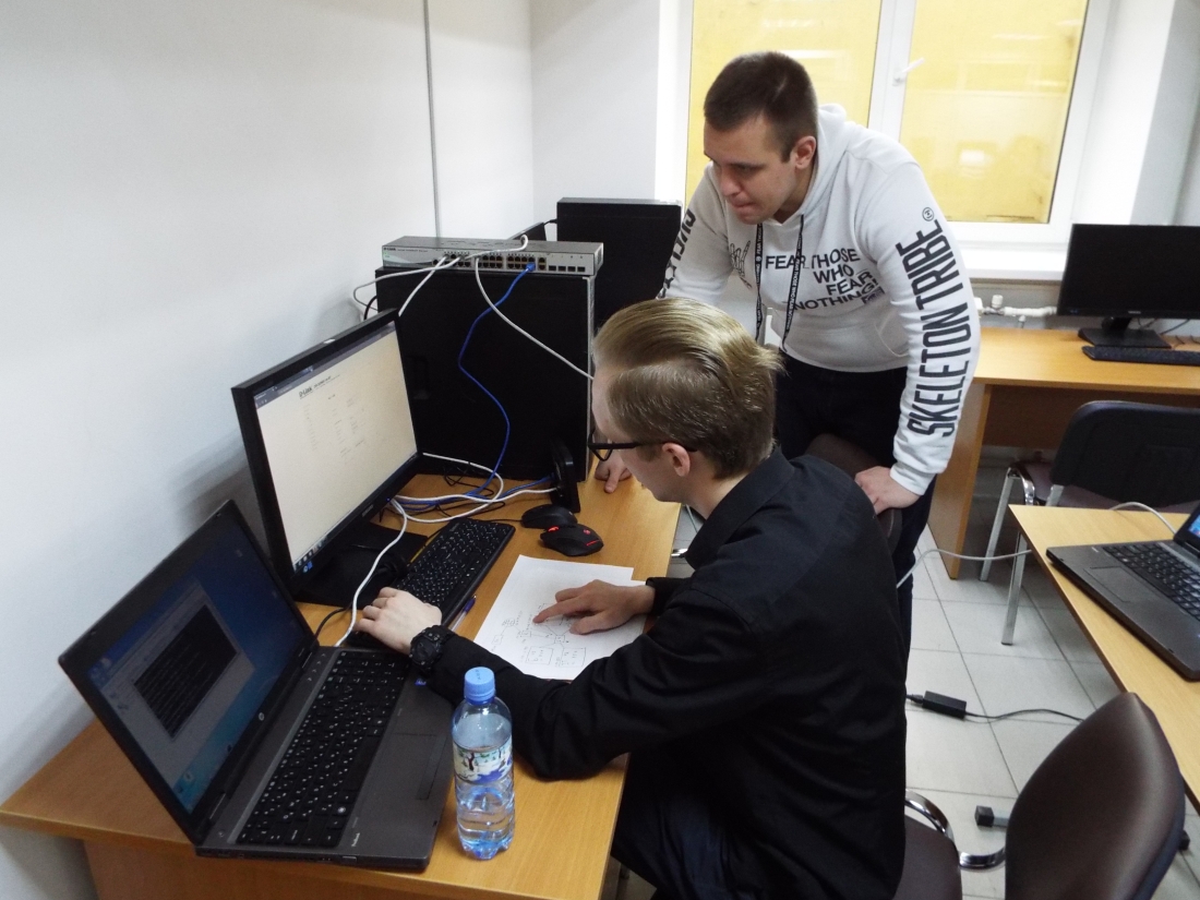 В финальном туре участникам было предложено практическое задание по планированию компьютерной сети организации, включающее настройку реального оборудования – коммутаторов, маршрутизаторов, клиентских компьютеров. Студенты должны были спроектировать структуру сети, назначить IP-адреса всем узлам сети, спланировать и настроить на коммутаторе виртуальные локальные сети, обеспечить выход во внешнюю сеть для всех компьютеров организации, настроить сетевой экран маршрутизатора для доступа к серверу организации из внешней сети.