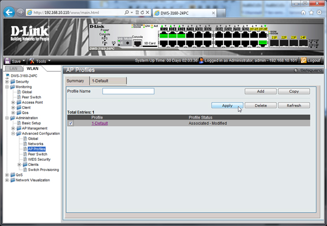 В списке AP Profiles в столбце информации о состоянии изменённого профиля видим его статус «Associated - Modified».