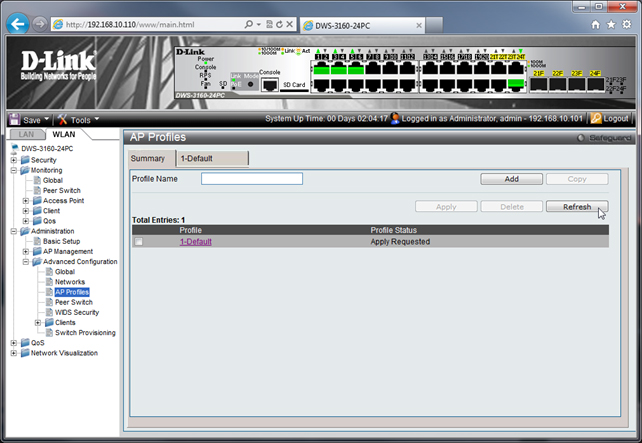 Если после этого несколько раз нажать кнопку «Refresh»,  то в столбце информации о состоянии изменённого профиля можно увидеть последовательно меняющийся статус: сначала «Apply Requested», а затем «Associated».