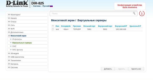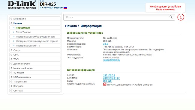 3. Используйте уведомление Конфигурация устройства была изменена в правом верхнем углу экрана, чтобы сохранять внесенные изменения.