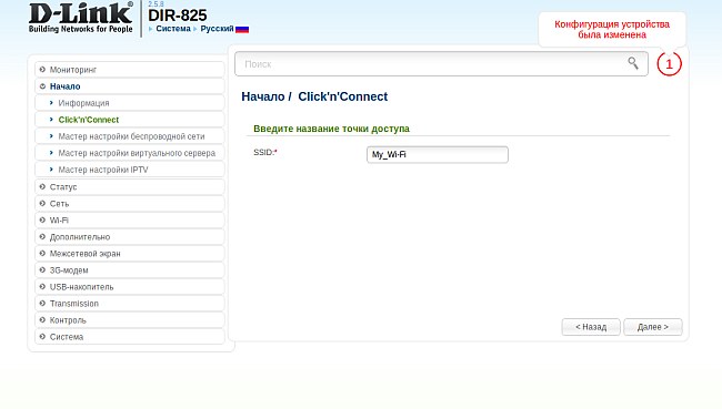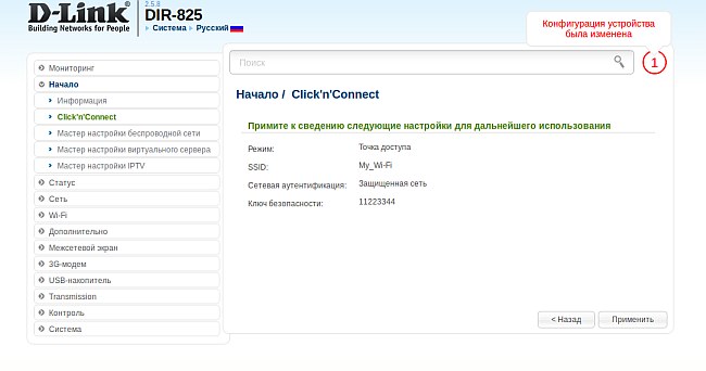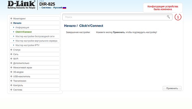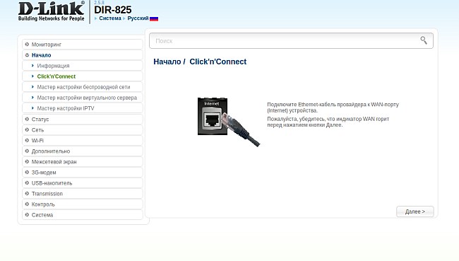 Click'n'Connect позволяет провести пошаговую настройку основных параметров маршрутизатора, включая соединение с сетью Интернет, параметры работы беспроводной сети и выбор порта для подключения ТВ-приставки.
