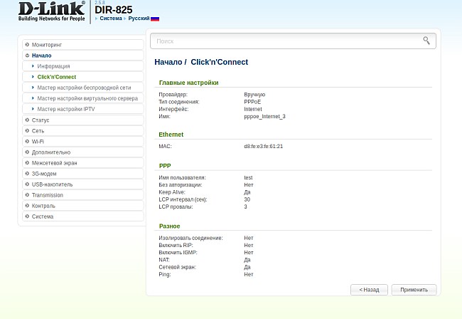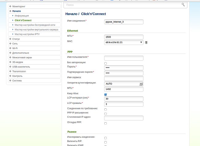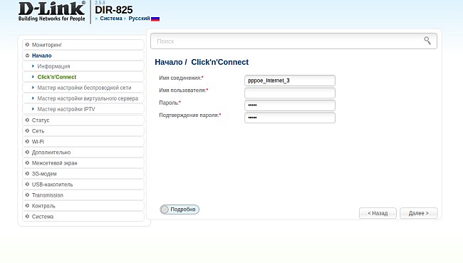 Вопрос: Настройка маршрутизатора для работы с типом соединения PPPoE с помощью Click'n'Connect