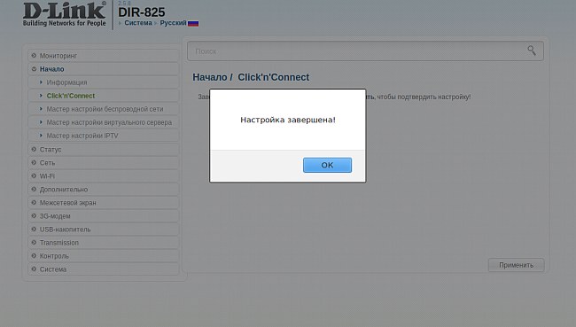 21. Далее маршрутизатор сообщит о завершении настройки. Нажмите ОK.