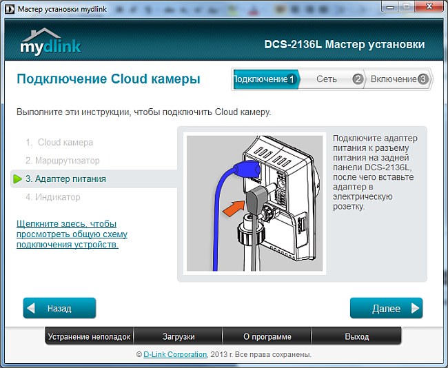 Шаг 2.3: Следуйте инструкциям на экране, чтобы подключить камеру к маршрутизатору и подключить питание. Нажимайте Далее после завершения каждого шага.
