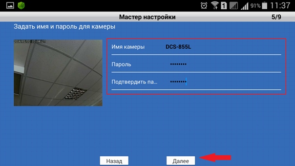 Шаг 9: Задайте новое имя и пароль для камеры. Подтвердите пароль.