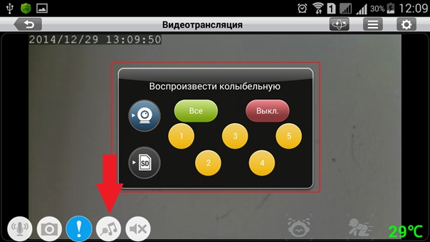 Шаг 2: Коснитесь значка камеры, с которой должна воспроизводиться колыбельная.