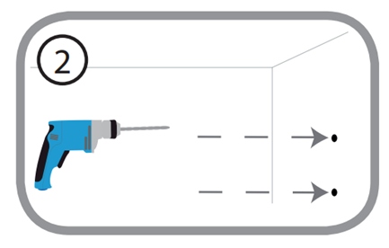 Шаг 2: В зависимости от материала, из которого сделана стена или потолок, используйте подходящие инструменты, чтобы просверлить два отверстия глубиной 25 мм сверлом 6 мм в размеченном месте. Затем вставьте пластмассовые анкеры для удержания винтов.