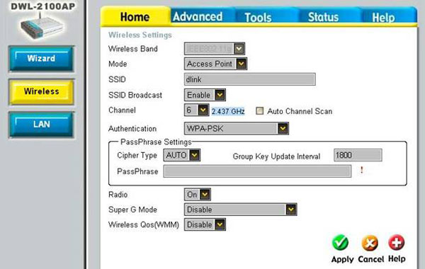 6. Аутентификация. Здесь Вы выбираете режим защиты вашей беспроводной сети. Рекомендуемые значения WPA-PSK или WPA2-PSK в зависимости от того, какую именно шифрацию способен поддерживать ваш беспроводной адаптер.