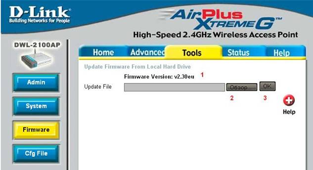 2. При необходимости обновить прошивку, заходите на адрес ftp.dlink.ru и скачиваете новую версию. Далее нажимаете кнопу «обзор» и указываете путь к тому месту, где у Вас на жестком диске сохранена новая версия прошивки.