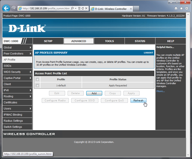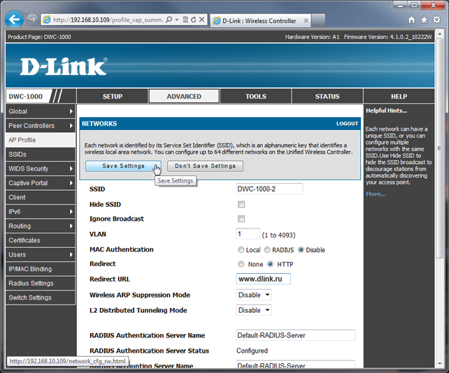 В веб-интерфейсе управления контроллером DWC-1000 переходим в меню
