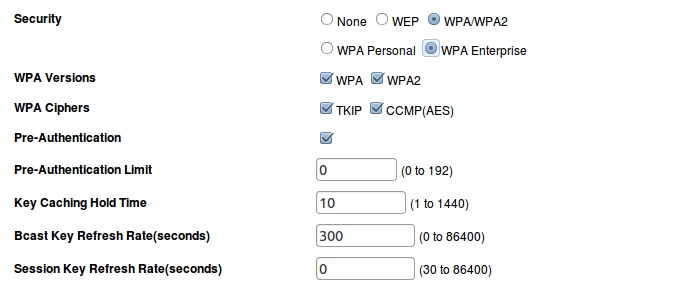 В разделе Security отмечаем WPA/WPA2 и WPA-Enterprise: