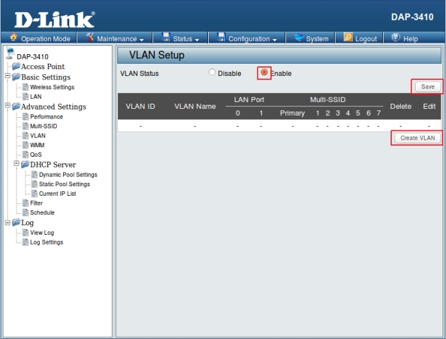 Порт коммутатора, в который подключена DAP-3410 также нужно сделать tagged.