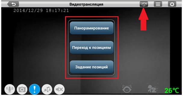 Шаг 3: Коснитесь кнопки PTZ   в верхнем правом углу окна Видеотрансляция, чтобы открыть страницу с настройками PTZ-управления.