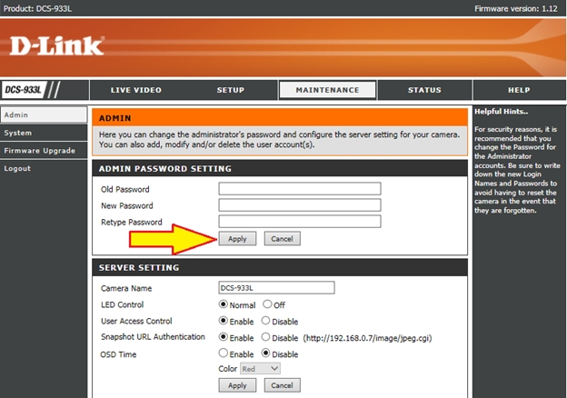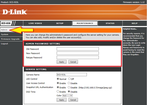 Вопрос: Как задать пароль администратора на камере DCS-933L?