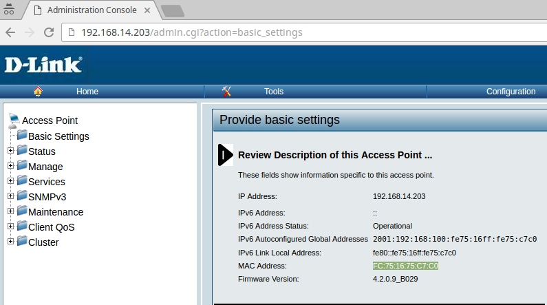 Остальные настройки «удаленных» ТД (Satellite AP) будем производить с помощью web-интерфейса. Для этого необходимо подключить компьютер к ТД или поместить в одну сеть с точкой и зайти на её интерфейс по адресу заданному ранее.