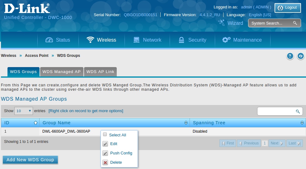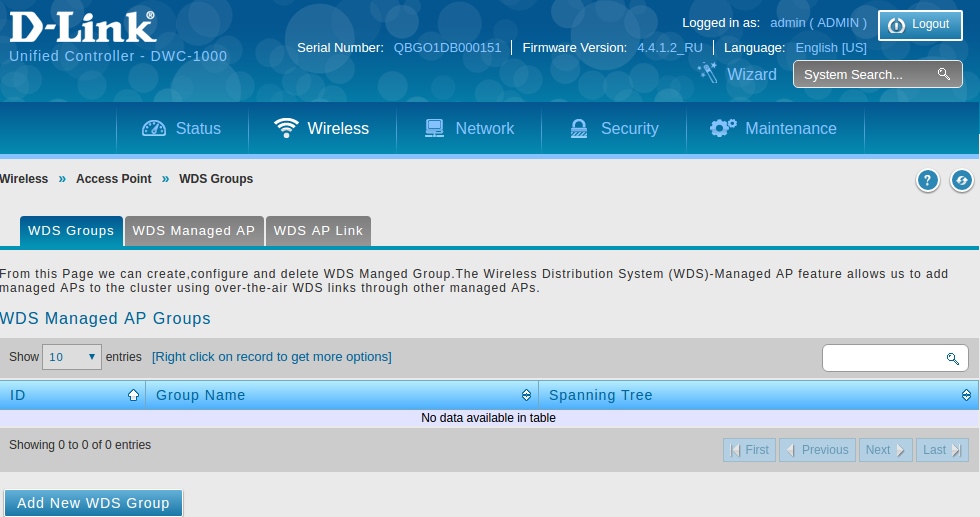нажмите кнопку «Add New WDS Group» и в открывшемся окне