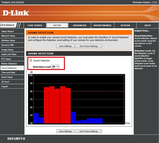 Шаг 5: Поставьте флажок в поле Sound Detection, чтобы включить программное обнаружение звука.