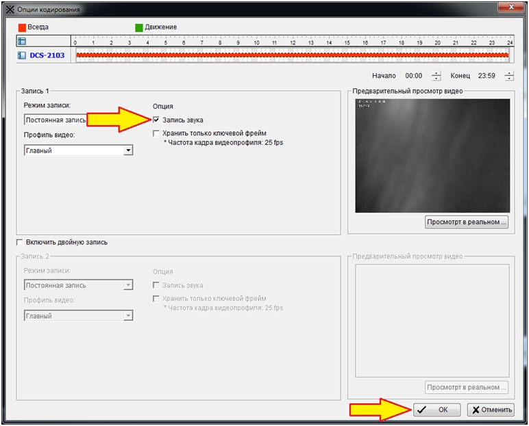 Шаг 3. Убедитесь что в поле Запись звука стоит флажок. Нажмите OK для применения параметров.