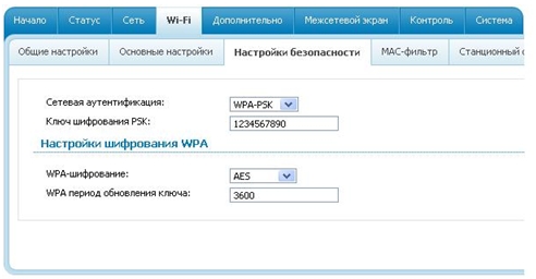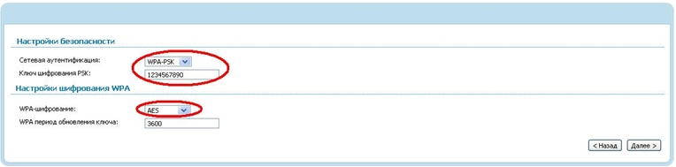 На вкладке «Настройки безопасности»  Вы можете настроить сетевую аутентификацию, ключ шифрования и шифрование.