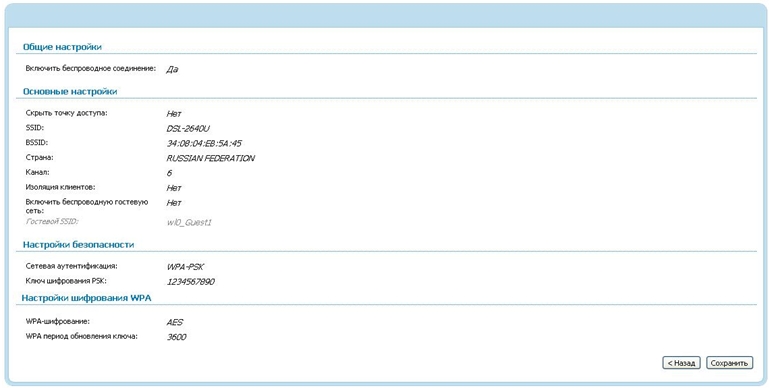 4. Вывод общих параметров Вашей сети перед сохранением.
