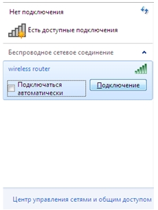 4. В открывшемся окне Беспроводное сетевое подключение выделите беспроводную сеть с установленным Вами ранее названиеми нажмите кнопку Подключить.