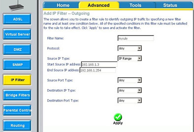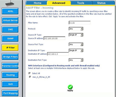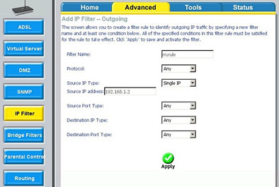 Функция IP Filter позволяет фильтровать проходящий через маршрутизатор трафик по IP-адресам и портам. Рассмотрим некоторые примеры.