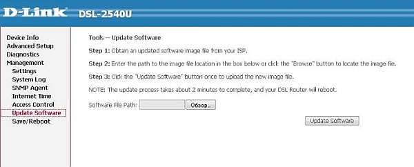 4. В web-интерфейсе устройства зайдите на закладку Management, затем на Update Software.