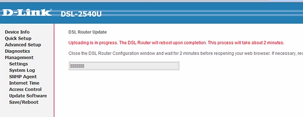 7. После завершения процесса обновления программного обеспечения зайдите на вкладку Management, затем Settings и Update.